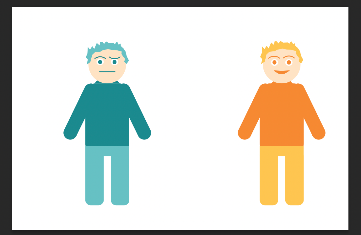 I created simple characters that would be used to show both behaviors. Though their expressions I was able to emphasize how the behavior makes people appear. For instance the Imposter syndrome character appears unsure while the Dunning-Kruger effect character looks over confident and over the top.